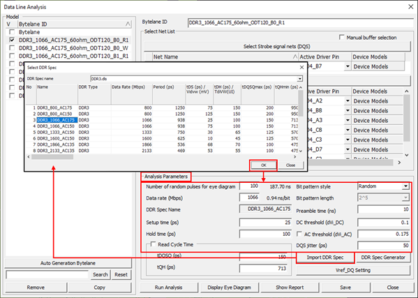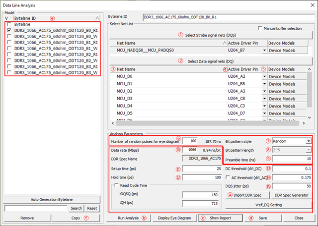 - Select Strobe signal nets: Strobe signal net for analysis can be selected over Select Net dialog.