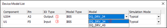 selectable among many different models in IBIS or Linear device model types.
