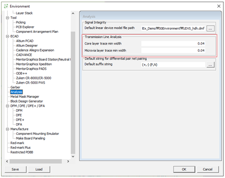 - Default material file path: you can set default material file path. This file contains parameter information for all materials that make up the PCB.