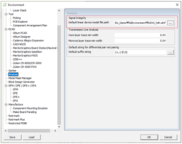 - Default part library directory: you can set default UPF directory path. The UPF contains electrical libraries such as footprints, logical symbols, 3 dimensional shapes, data sheets, simulation model, mount data for electrical/thermal analysis.