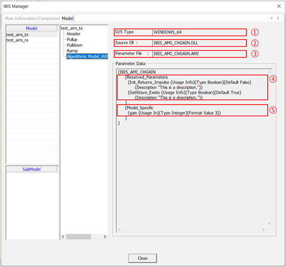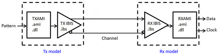AMI is a widely used behavioral modeling standard for SerDes transceivers. The AMI model typically involves adaptive filtering and is comprised of two main components: an analog model and an algorithmic model. And it consists of three files: .ibs, .ami, and DLL. The analog model is specified in the .ibs file. DLL is the executable of the algorithmic model, whose parameters are specified in the .ami file.