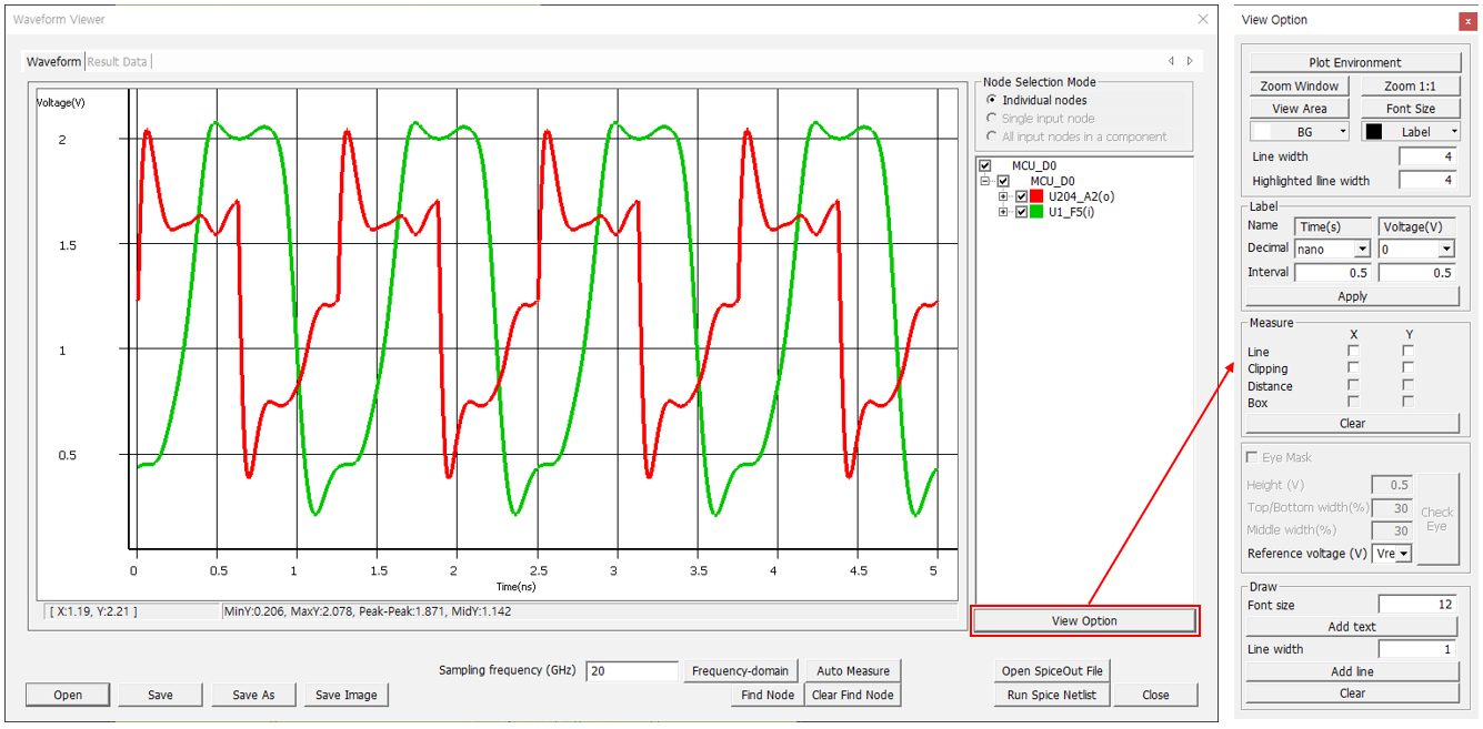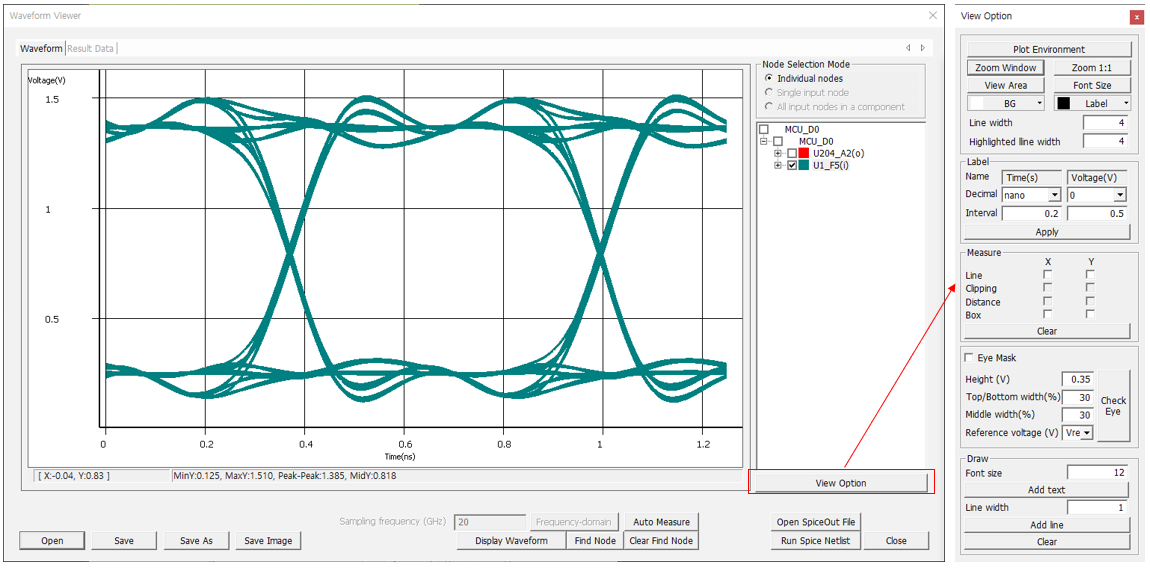 waveform viewer. Check Eye menu allows users to check if the eye size is large
