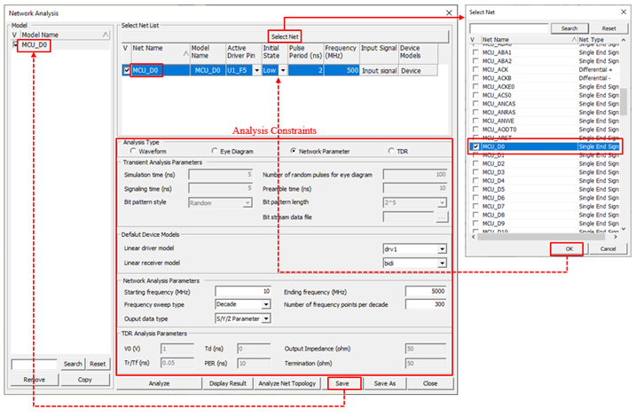 Creating a network analysis model starts with selecting a net from the net listing.