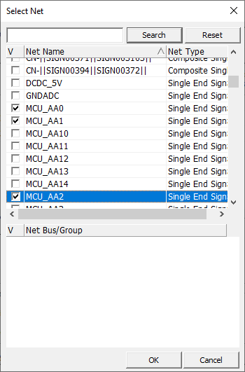 2. Select Net: Nets for analysis can be selected over Select Net dialog.