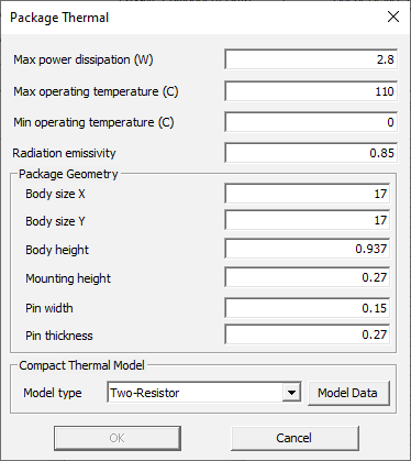 Package Thermal: Specify the package thermal properties for thermal