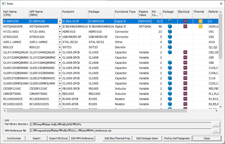 There are no check marks which are shown at the Package, Electrical, and Thermal columns. The check mark in the Package, Electrical, and Thermal columns means a component has Package/Electrical/Thermal information. After importing information from UPF, those icons are created depending on the existence of the corresponding information.
