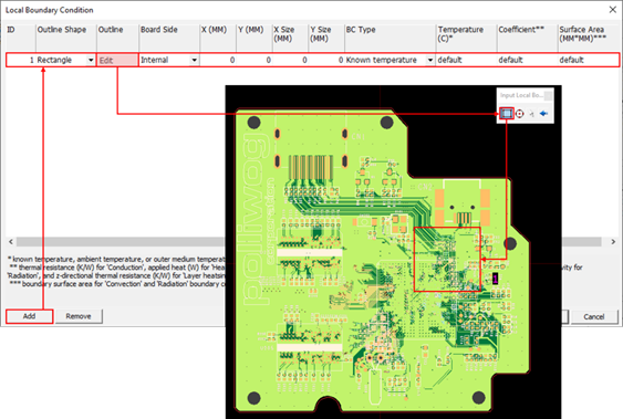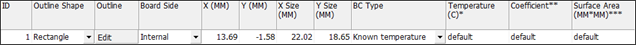 Adjacent board temperature: If the value, Radiation boundary Condition is Yes, set the board temperature of adjacent board.