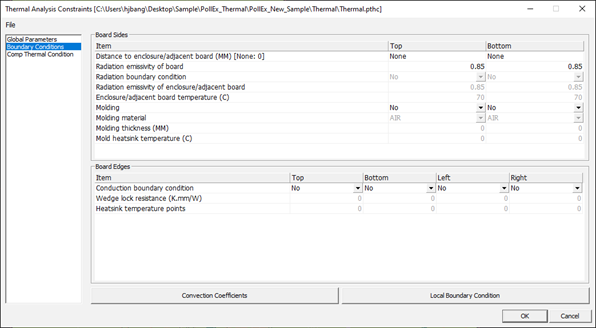 If you want to assign different convection condition for some area, define them after dividing PCB into block. After making block, users can assign convection coefficient into block with values, flow temperature and heat transfer coefficient.