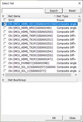 In the Select Net dialog, select the net to analyze and