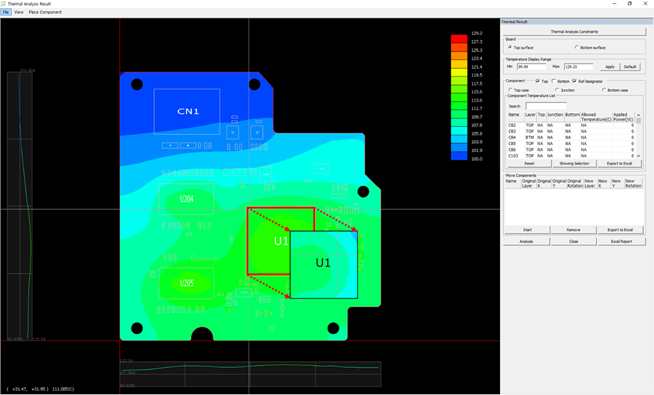 Move Component: At this tab, click Start to change location of components. After selecting component on design, re-locate component in certain location. This feature is effective when their users want to disperse high-temperature components.