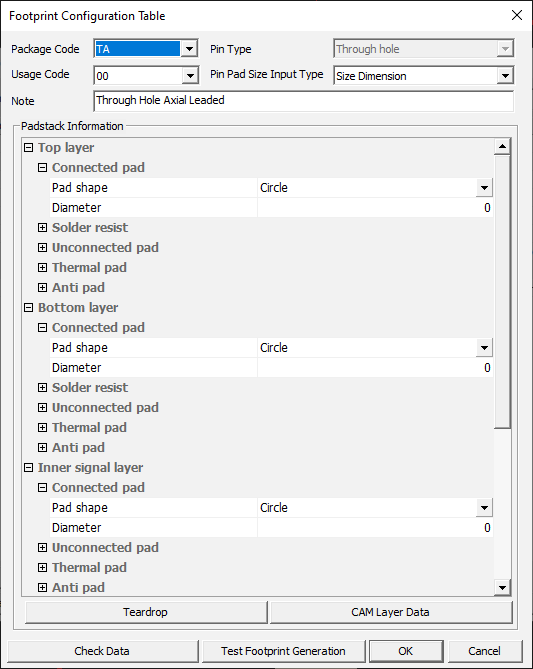 - Pin Pad Size Input Type: Select the method for defining pad size among Size Dimension and margin from Drill Hole.