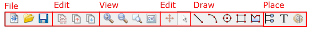 - Draw menu: Draw objects such as lines, arcs, circles, rectangles, polygons, and text boxes.
