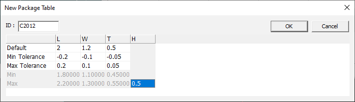 - Tolerance: Define the dimensions with typical value and minimum and maximum tolerances.