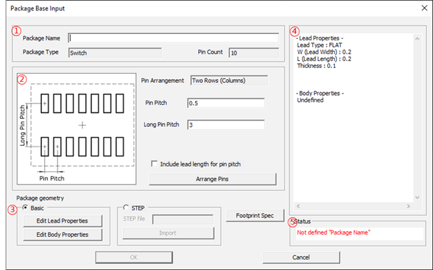 2. Edit Lead Properties: Define the package pin shape and size.