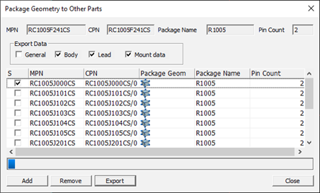 - Export: Export package geometry information to selected parts.