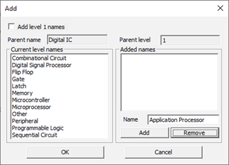 The level 1 means the top-level product family such as Analog IC and Capacitor.