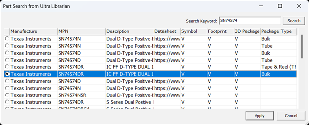2. Search Keyword: Enter a keyword to search for the parts from the Ultra Librarian.
