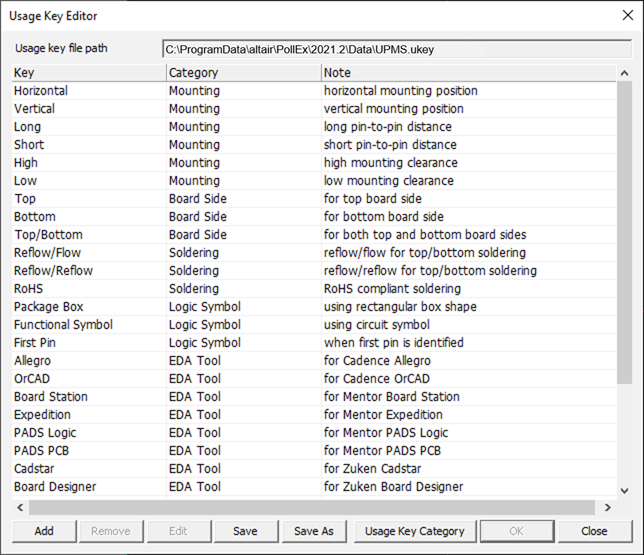 Usage Key Editor