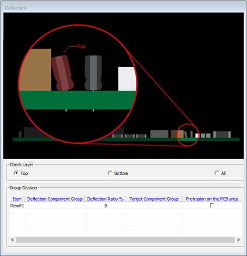 - Protrusion on the PCB Area: Check the deflected components that are out of PCB area.