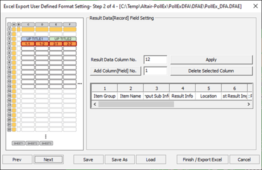 - Enter the content or title of the column selected in Step 2 of 4 and save the file. The saved file becomes the selected file in 1 of step 1 of 4. Therefore, you should predict the number of columns and their positions beforehand to use them appropriately.