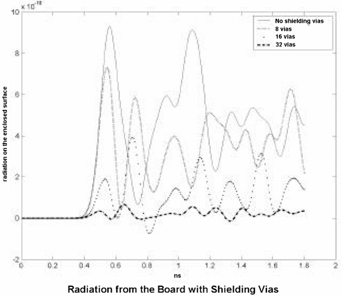 In general, a signal that flows in a through-hole via does not cause much trouble. However, in high frequency, within via region, a phase shift may occur. To stabilize high speed signal, ground shielding becomes necessary. But a perfect via shielding is impossible. Instead of via shielding, it is better to place ground vias close to a signal via location.