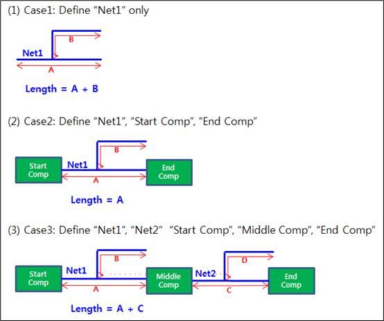 • Net Length Check: Checks the total length of specified net. You also can check the length of the specified net between start component and end component.