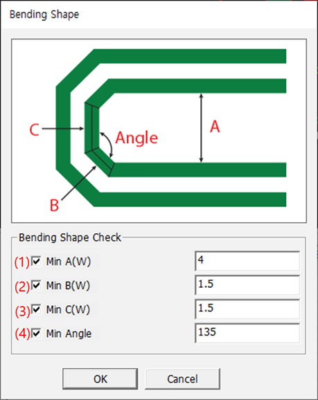 - Min A(W): Required minimum separation between bending trace.