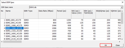 Import DDR Spec: In order to analyze DDR timing, user has to enter every
