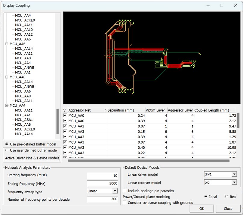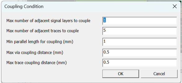 - Victim Layer: With Aggressor Layer, two columns show where the coupled traces, one is victim and the other is aggressor, are routed.