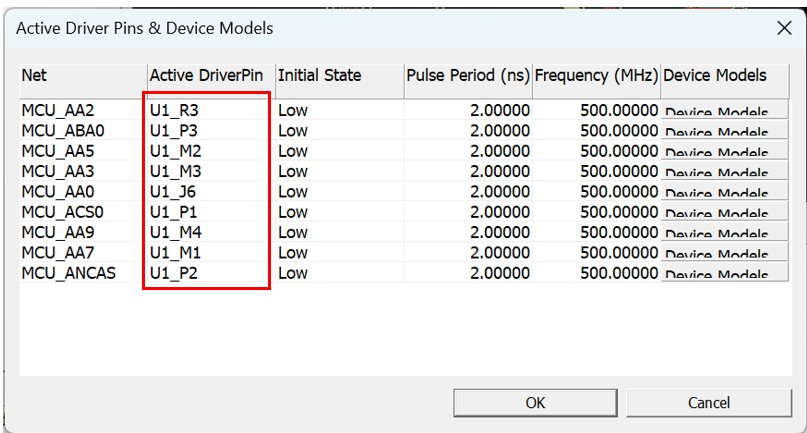- Active Driver Pins & Device Models: Click then Active Driver Pins &