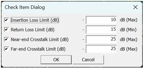 - Near-end Crosstalk Limit(dB): If NEXT value is smaller than the limit value user entered, it fails.