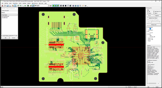- Select Component From List: Components can be selected by selecting a part name from the part name list table in the Select Component from List dialog. Select the desired components and click Add, then the selected components are moved into Selected List section.