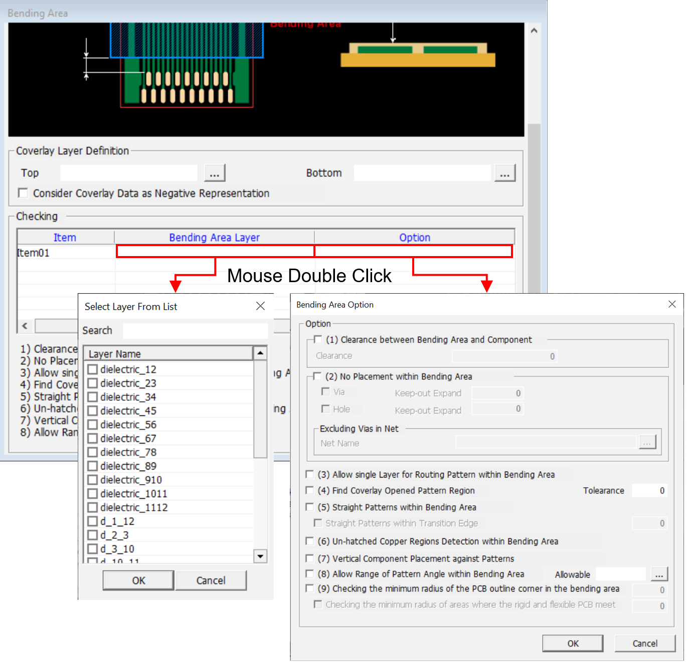 - Clearance: Set the clearance value between FPCB bending area and other components.
