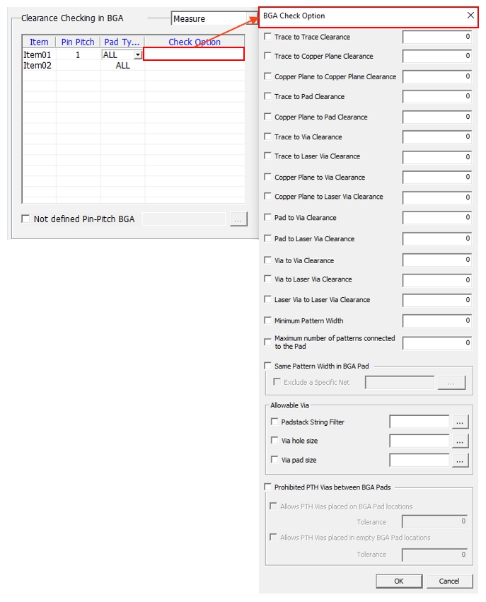 - Clearance Checking in BGA: Among defined BGA components, pick the BGA