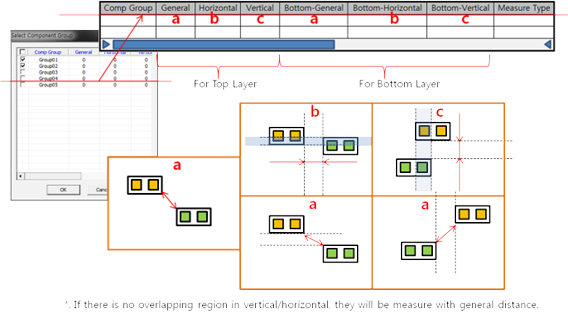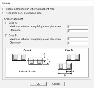 - Except Component in Other Component Area: Each lines exceptional option. When it is checked, PollEx DFM will skip clearance checking for overlapped components.