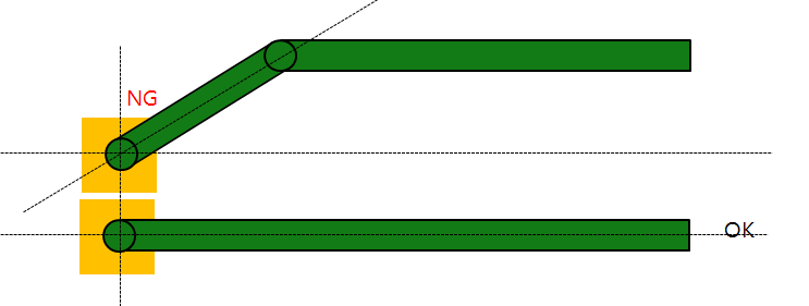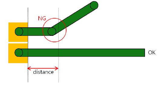 - Check the right angled Pattern from Pad Edge: Check pad connected