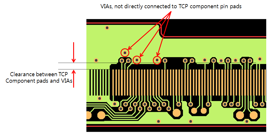 - Clearance between TCP Component Pad and Copper-Pours: Set the clearance between the TCP component pad and copper-pours.