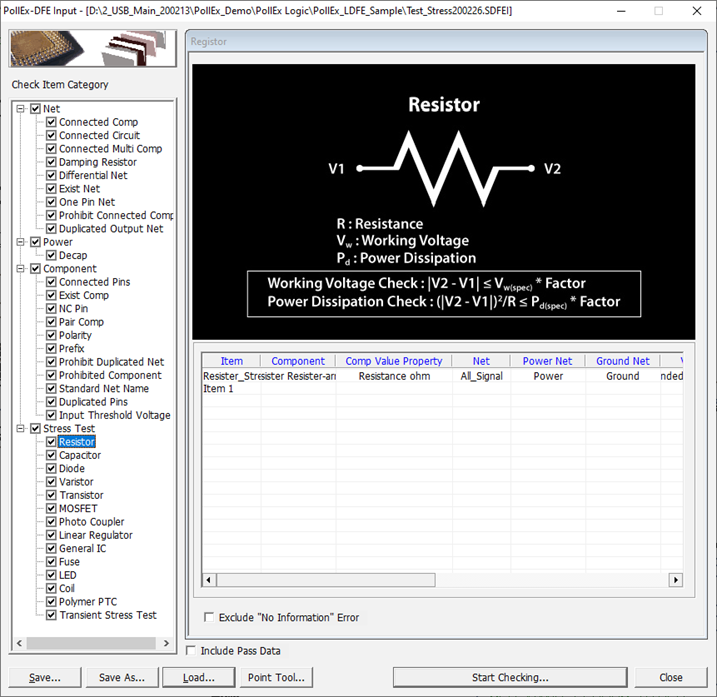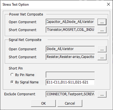 Stress Test Option: Set whether passive components are considered short or open when