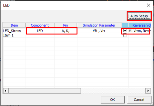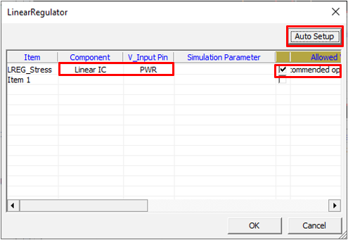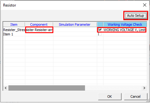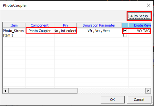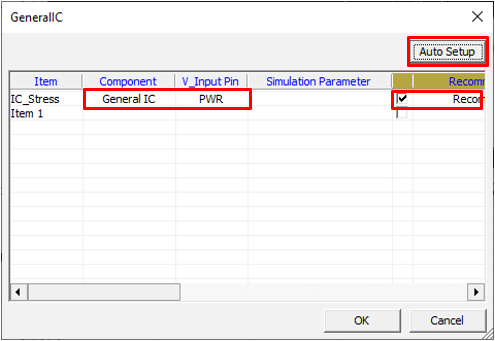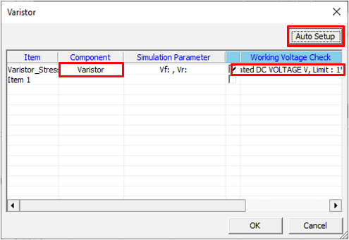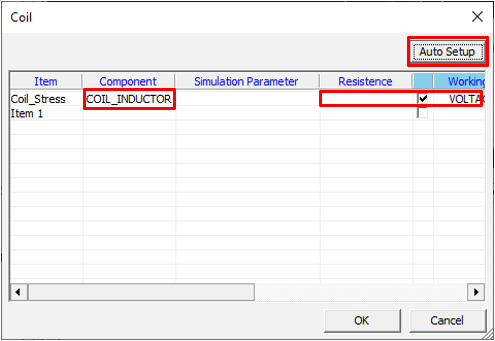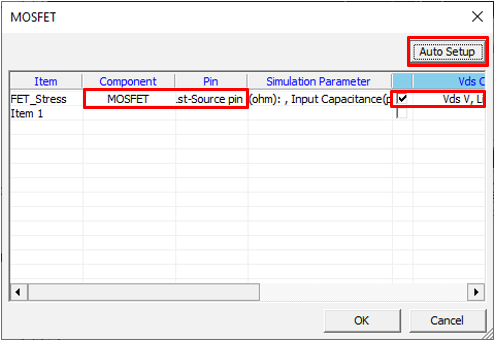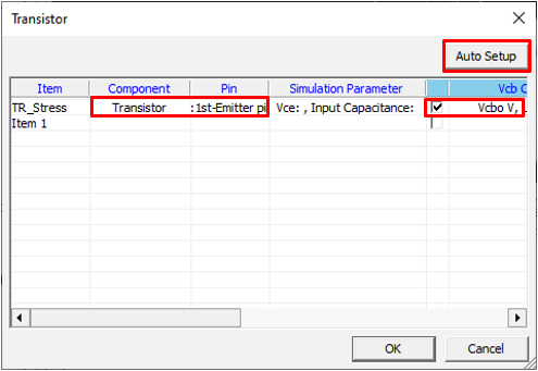 Set Polymer PTC component parameters for the Transient Stress Test item.