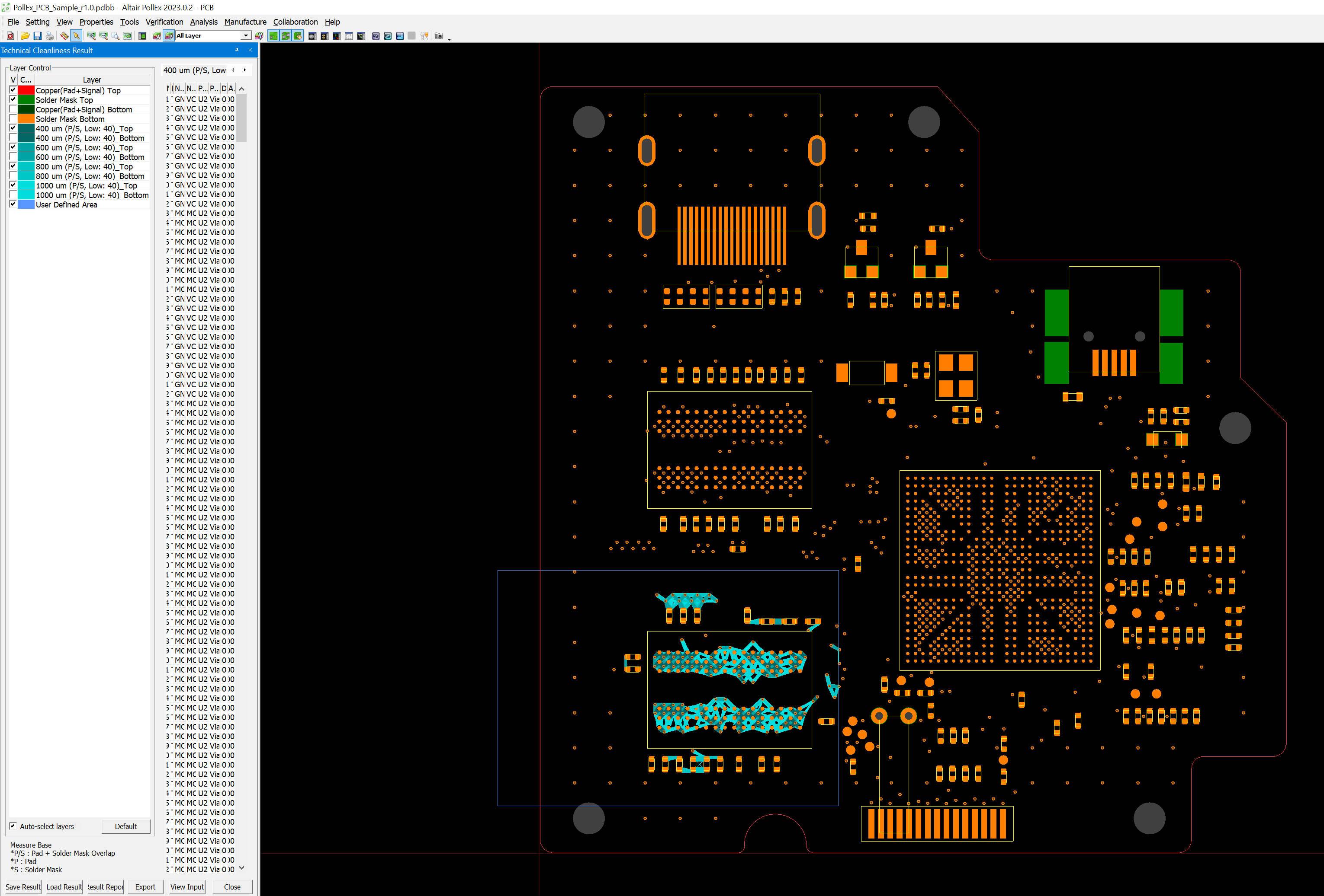 Export - This button exports the result data to ODB++ format.