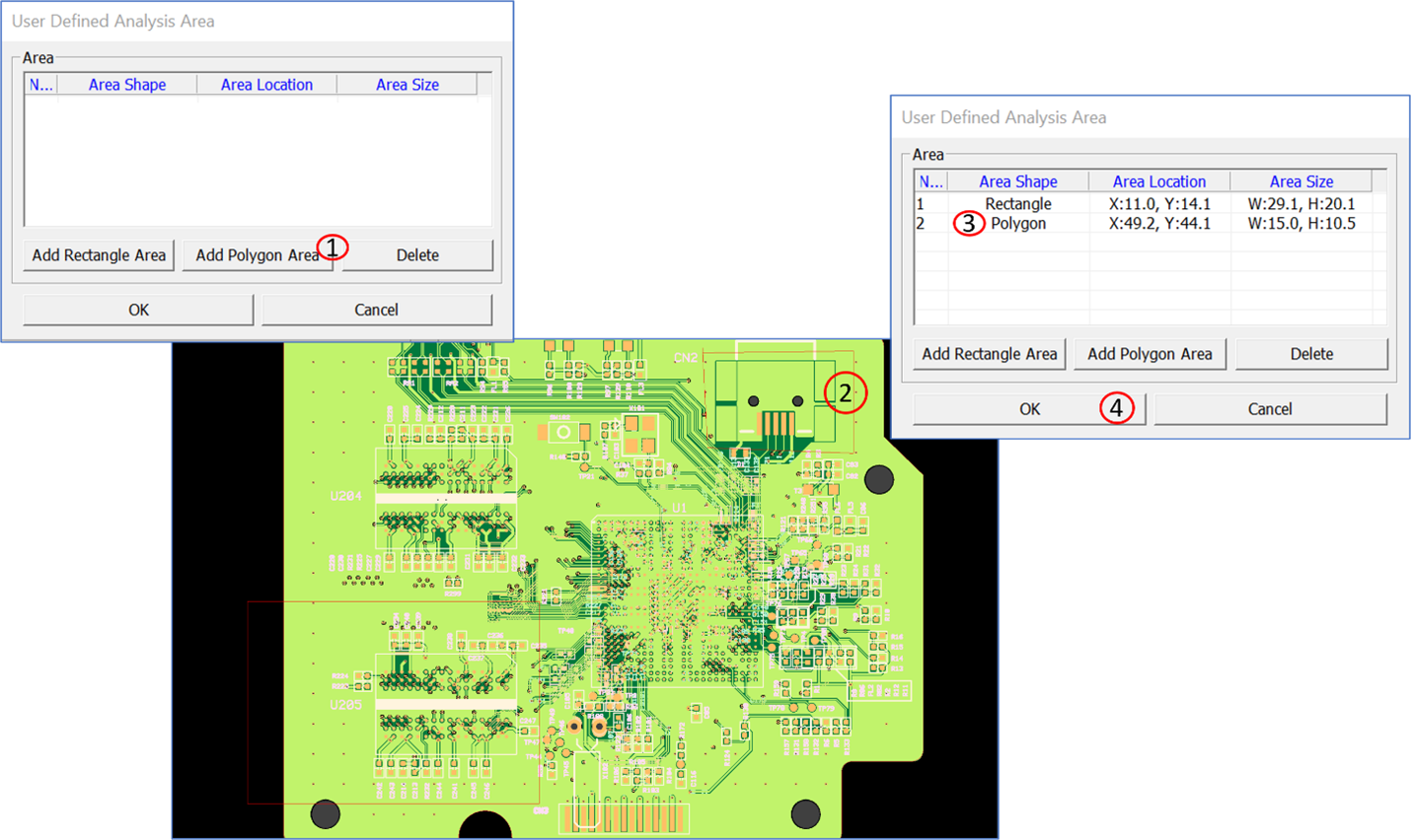 Select the user-defined analysis area in the design for the user to allocate a specific region or section for analysis.