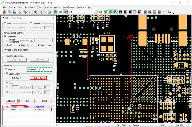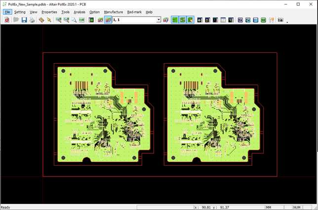 - From the menu bar, click and open the PollEx_PCB_Sample_r<revision number>.pdbb file from C:\ProgramData\altair\PollEx\<version>\Examples.