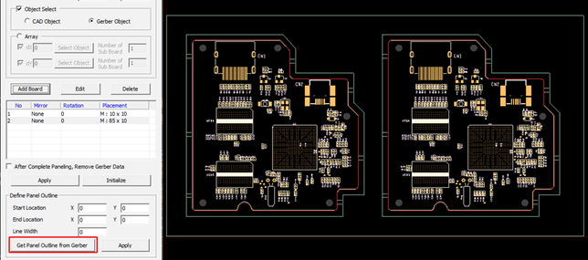 Use the Get Panel Outline from Gerber option to define the Panel Outline.