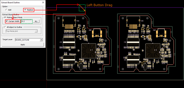 When the Metal Mask Gerber of the panel board is prepared, the sub-boards can be automatically calculated by selecting the component pad of the design data and the pad object of the Gerber data.