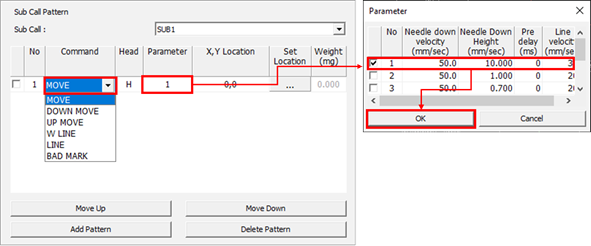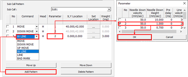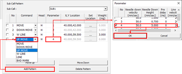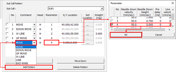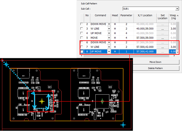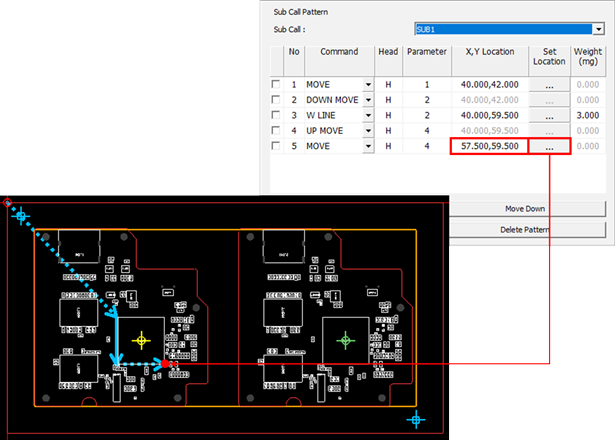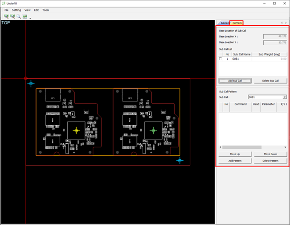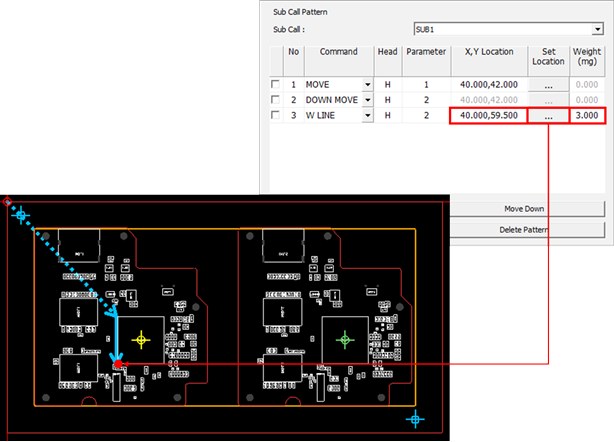 (40.0,59.5) and applies 3mg of the underfill solution. The moving speed