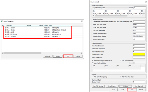 In the Base Check List dialog, click