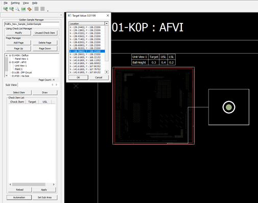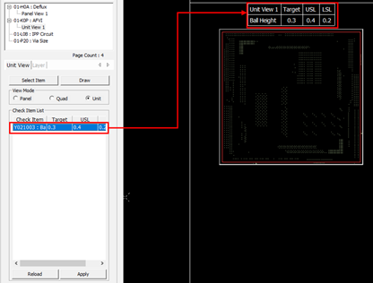 Figure 9. The spec table of the check item is displayed at the top of the