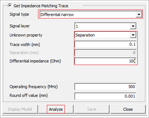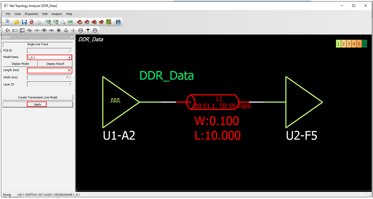 The selected trace model denotes that it is routed at 1 layer with 0.1 (mm)