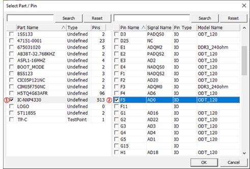Device pin model => U1_A2. U2_F5 is the reference pin name of a receiving