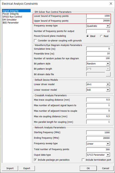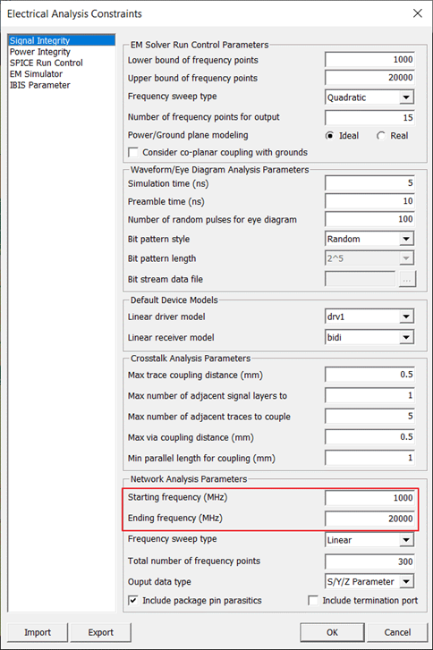 Please note that the EM Solver Run Control Parameters are frequency information used for converting PCB interconnectors into equivalent circuits for SerDes simulation.